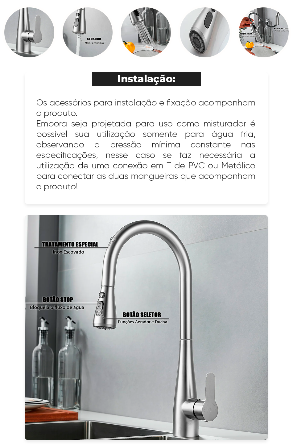 Embora seja projetada para uso como misturador é possível sua utilização somente para água fria, observando a pressão mínima constante nas especificações, nesse caso se faz necessária a utilização de uma conexão em T de PVC ou Metálico para conectar as duas mangueiras que acompanham o produto!