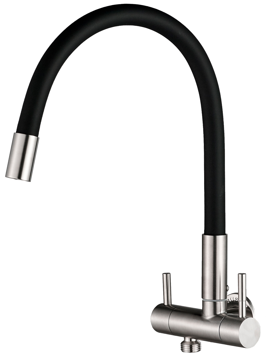A torneira é fabricada em Aço Inox 304 com acabamento escovado. A mangueira é de aço inox flexível revestida em silicone de alta densidade.